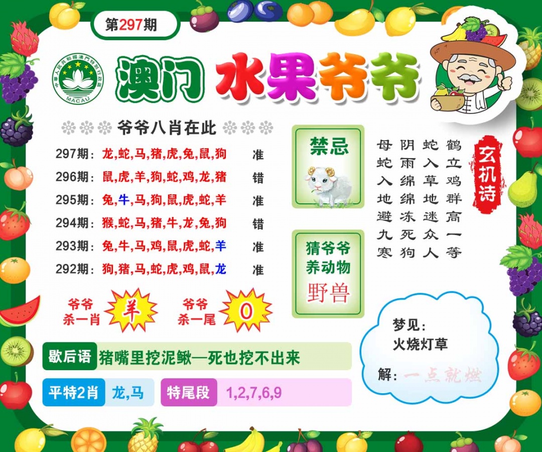第297期:澳【①肖①码】【平特1肖】实力见证猛料